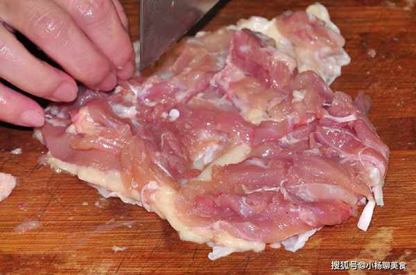 再將雞腿肉橫劃數刀斷筋,以免雞排遇熱卷起。