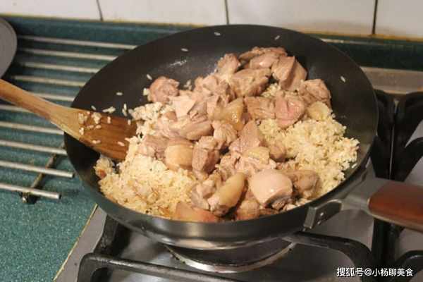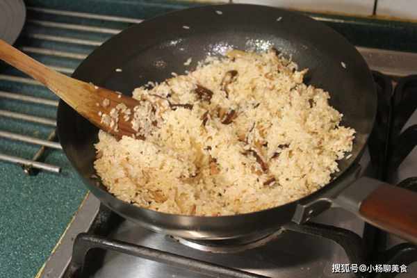 Step8.放入濾幹後的米翻炒均勻至半熟。若米已經炒幹,可先加約50cc的水,繼續拌炒。