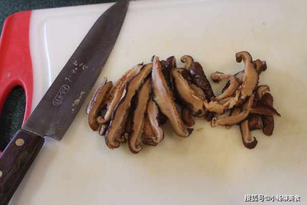 Step3.香菇泡水後,切絲備用。香菇水要留著。