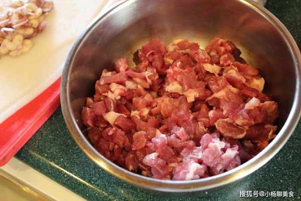 Step2.將梅花肉和猪皮剁切成小丁。也可用絞肉來煮,但是切小丁的肉燥,較香較有口感。