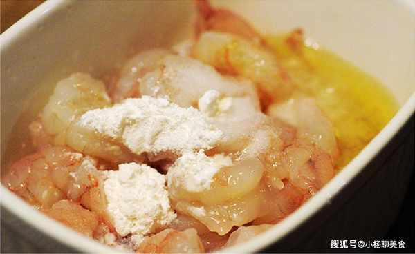 Step3.將蛋白加入蝦仁,再加入太白粉、鹽巴拌勻,用手進行抓醃(給蝦仁馬殺雞)的動作約2分鐘(會起泡)。