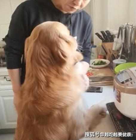 一天這位女子提前下班回家,走到廚房時就看到了這樣的一幕:自己家的金毛趴在父親的身邊,像是在撒嬌一樣,然後父親在準備著食材,一人一狗的背影,看著就十分的和諧。