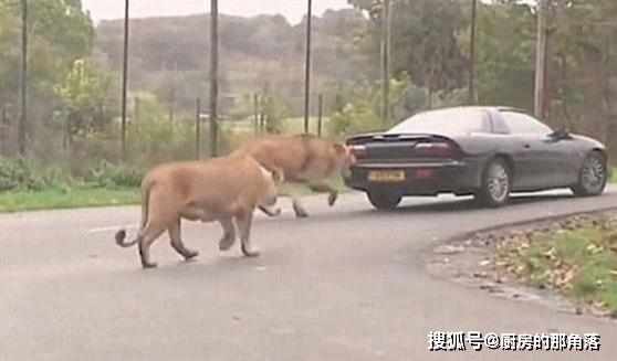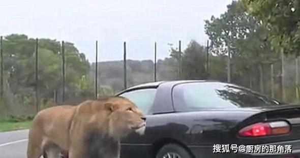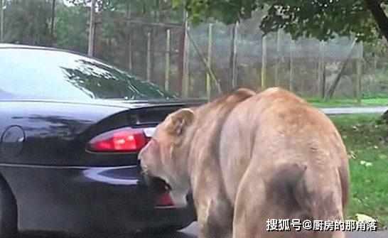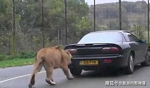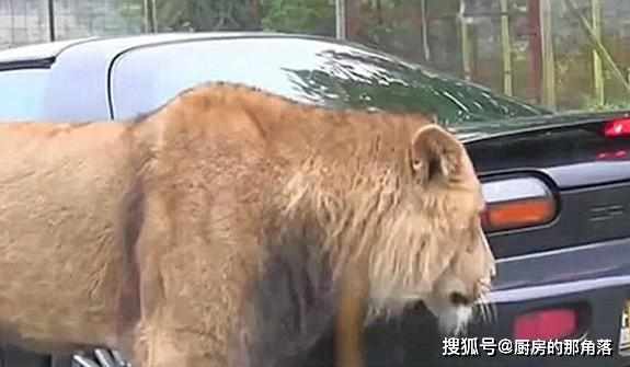 因為工作人員在動物園閉館後乘坐汽車進入了園內,可能是因為這些野生動物都沒有見過小汽車,一頭獅子就好奇了走了過去。