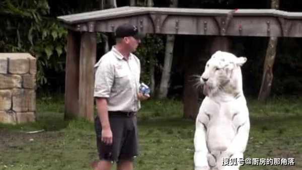 而老虎在面對自己馴養員的時候也會變得格外溫順。國外有一家動物園裏養了一頭白虎。這天,飼養員來到白虎園裡查看這頭白虎的情况。