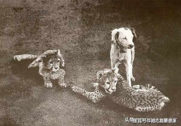 圖:1897年,印度,兩隻亞洲獵豹幼崽和一隻小狗。