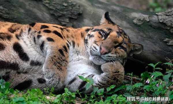 雲豹是一種身體細長、體形矯健的貓科動物,但圖中的這只動物園中的雲豹自從不久前動了一場手術後,就在變胖的路上越走越"寬"。只要它躺下來,就基本看不到它的脖子了。