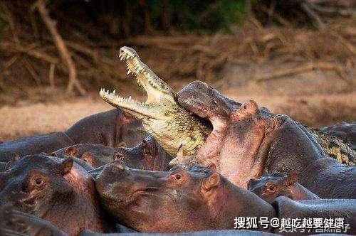 【被河馬當玩具】河馬是一種領地意識很强的大型動物。圖中的這條鱷魚一不小心闖入了河馬的領地,這群河馬十分憤怒,像玩具似的咬住鱷魚扔來扔去,不一會兒這條鱷魚就被河馬們玩兒死了……