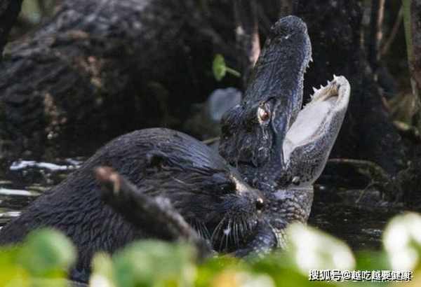 【被水獺生吃】水獺(tǎ)是一種看上去十分可愛的動物,但一些種類的水獺戰鬥力卻不容小覷,甚至被稱為"水中蜜獾"。圖中的這條鱷魚被一隻水獺襲擊,水獺從鱷魚背後使勁咬住鱷魚的脖子,直至將鱷魚殺死,然後就開始了一場痛快的生吃。