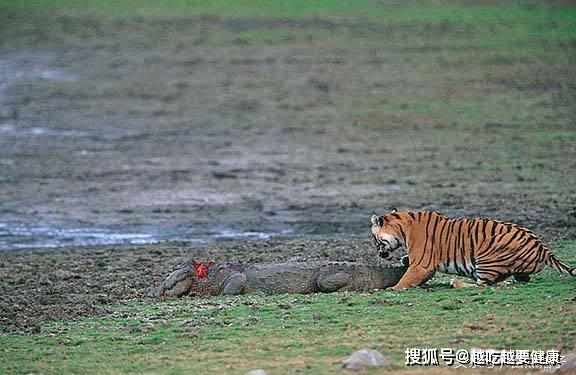 【虎口難逃】虎是一種有勇有謀的掠食者,一向喜歡單幹,被稱為"獨行俠"。圖中的這只虎成功獵殺了一條體型龐大的鱷魚,從鱷魚受傷的脖頸處我們可以猜測,這只虎是從鱷魚背後進行了迅猛的襲擊。