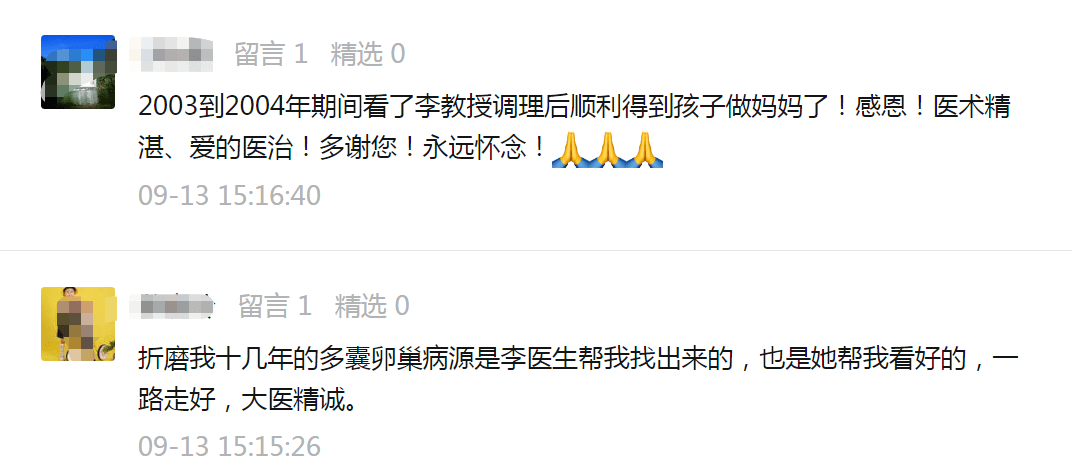 還有一比特網友說:"感恩李奶奶幫助調孕,未來得及告訴您,孩子一直都勤奮好學,今年大一入讀您的母校廣州中醫藥大學。李奶奶一路走好!永遠懷念您!" span>