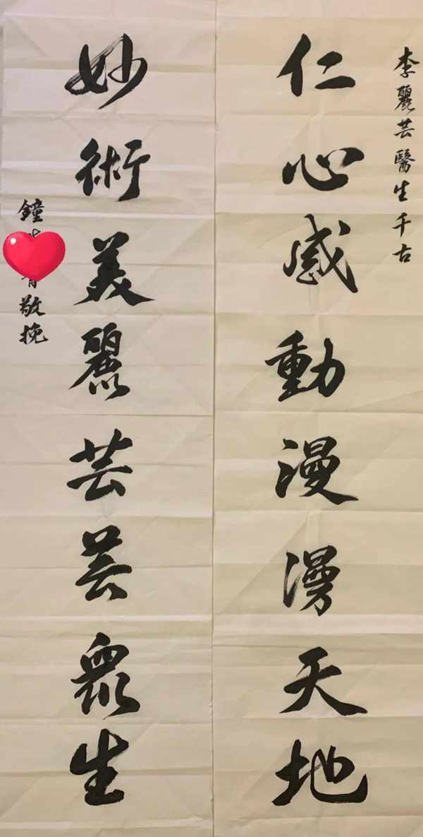 患者鐘女士與李麗芸教授結緣27年,在聽到李教授去世的消息後,悲痛不已,送來了與家人一起寫的挽聯: strong>