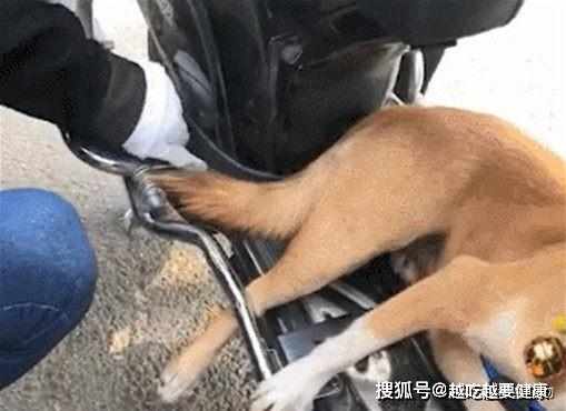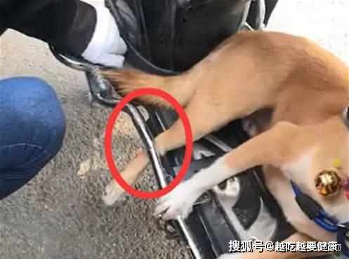 周日的時候,小張帶著兒子和狗一起騎著電瓶車出去遛彎,等到了地方,狗卻在電瓶車上不肯下來,小張很納悶,過去一看,原來狗的後腿卡在電瓶車上。