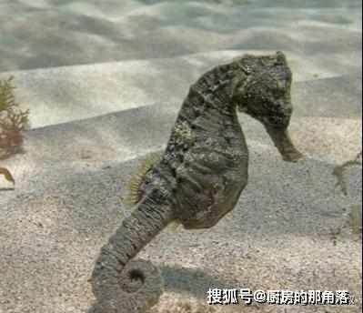 潛水夫近距離的發現這只海馬居然是一個無脊椎動物,而且還不擅長游泳,看著海馬長長的尾巴,勾住珊瑚好像是怕被水給沖走了。