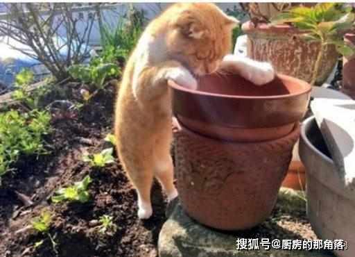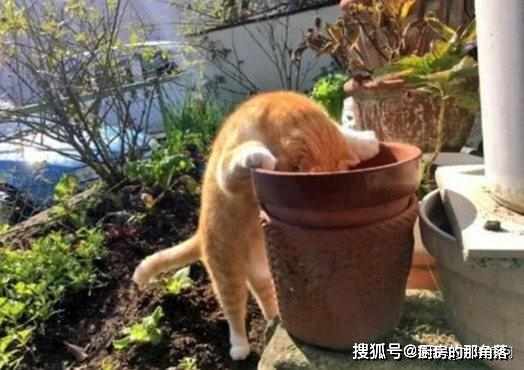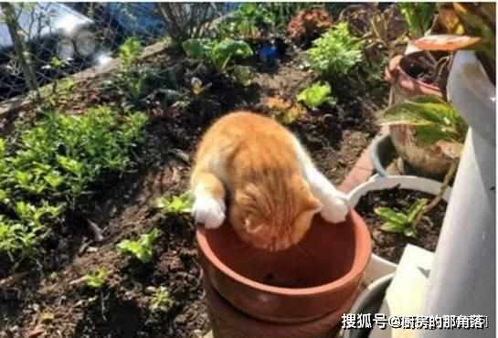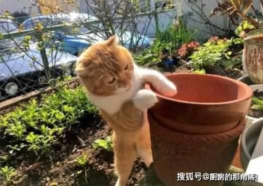 主人心想著,這樣的話,猫咪應該就不會給自己搗亂了吧,因為想要吃到花盆裏的小魚幹還是比較困難的。