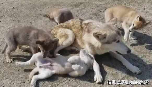 主人沒有在意,但是過一段時間狗狗的肚子變大了,心想:懷孕了。主人很無奈只好為沒有出生的狗崽搭建房子,但是生下來之後發現寶寶一點不像二哈,二哈氣的半死,所以只能狼犬照顧它們了。