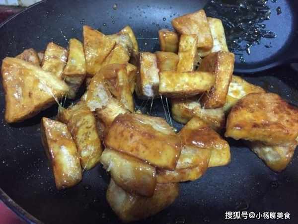 3、這時候關火,倒入芋頭塊快速的翻炒均勻,使芋頭塊均勻的掛上糖液,炒勻即可裝盤,裝盤的時候記得盤子底部撒上點糖或者鋪上蕃茄片防粘哦。