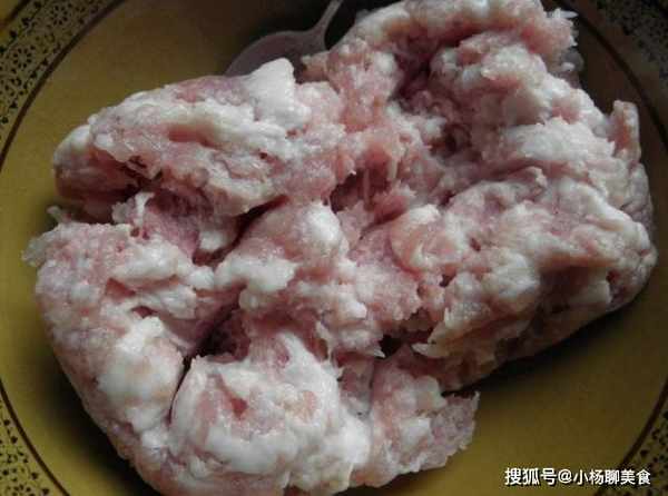 1、猪肉剁成末,猪肉最好選擇肥瘦比例為3:7或者4:6的前腿肉或者五花肉,肉餡剁好放到一個盆子裏。