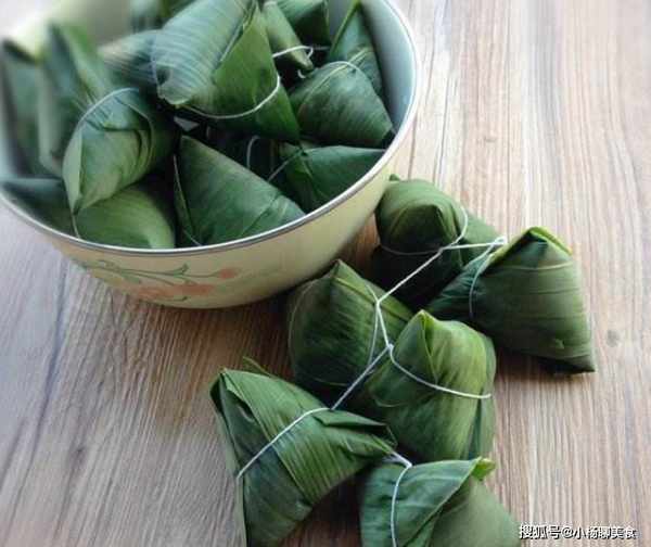 2、粽子的捆紮也是有很多技巧的,根據餡料區分方法。如果是豆沙粽不宜捆得太緊,防止米粒擠進豆沙中,如果煮不透會出現夾生現象。鹹肉粽如果用肥猪肉不宜紮緊、鬆緊適度即可。如果用瘦猪肉就要紮緊,因為瘦肉熟了以後會收縮,粽餡的肥汁會漏入水中,不能保持粽子的肥糯。