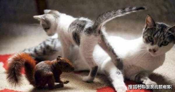 猫媽媽把小松鼠當做自己的孩子一樣對待,還把小松鼠和小奶猫帶著一起玩耍。看來我們的小奶猫也是很大度的,沒有一點排斥小松鼠的樣子。