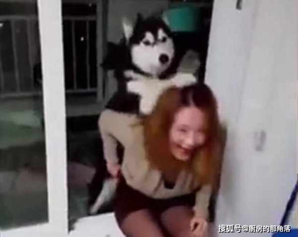 還好這時男主人回來,見此場景,男主人馬上把狗狗抱了下來,狗狗想掙脫,卻被主人死死抱住。