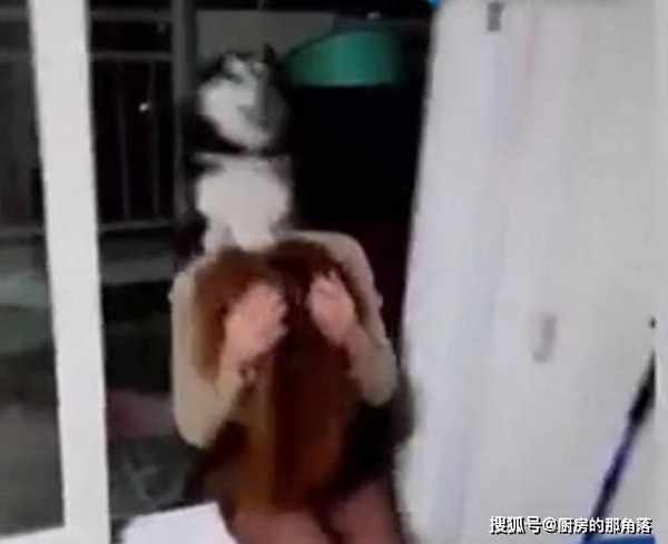 不一會兒,狗狗停止了按摩,按住女主人的頭就開始撓。女主人還沒反應過來,狗狗就在頭上撒野,真是太氣憤了。