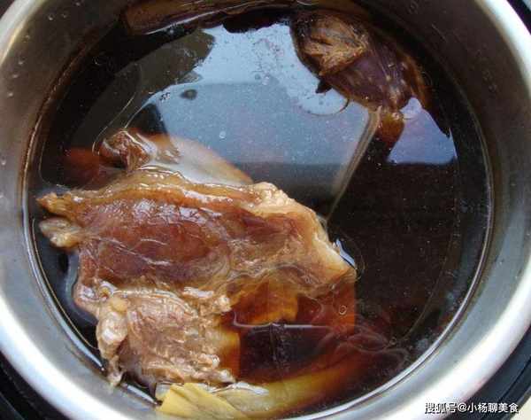 步驟七:然後放入焯水完成的牛肉,再次煮開後,繼續慢燉2個小時左右,關火後放置一晚上,即可撈出食用。