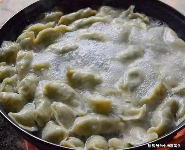 步驟七:鍋內添冷水燒開,下入餃子,再次煮開後,拿走蓋子,繼續煮到餃子鼓肚,然後繼續煮1-2分鐘,即可盛出食用。