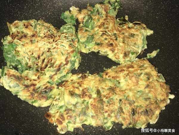 步驟四:起鍋熱油,油熟後倒入芹菜葉雞蛋液,翻炒到雞蛋液變熟,搗散盛出食用。