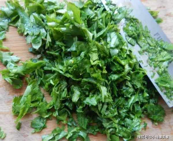 步驟一:芹菜葉去掉黃葉,放入清水中洗乾淨,瀝幹水分切碎。