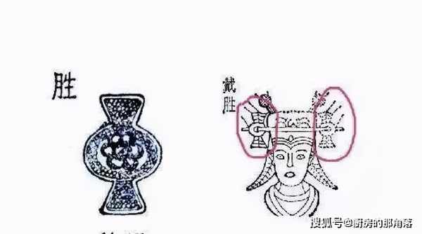 《山海經?海內北經》記載"西王母梯幾而戴勝杖"。在山東嘉祥武氏祠漢代畫像中,我們可以看到刻有"玉勝"圖樣,對稱兩勝以"杖"連接,中心有圓孔,可以橫貫於頭髮上,畫像石中的西王母就佩戴這樣的"勝"。