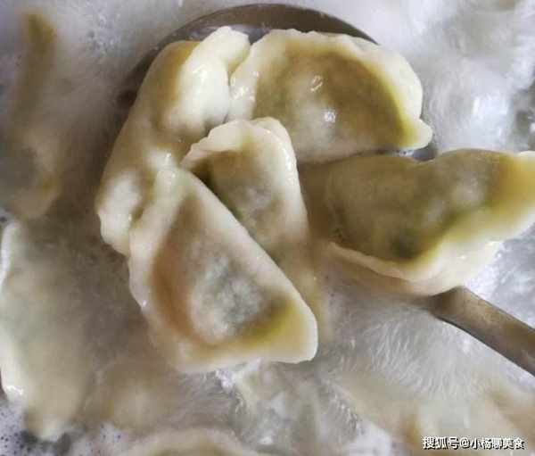 步驟八:鍋內添冷水,大火燒開,下入餃子,輕輕推散,再次煮開後,拿走蓋子,就像煮到餃子鼓肚即可盛出食用。