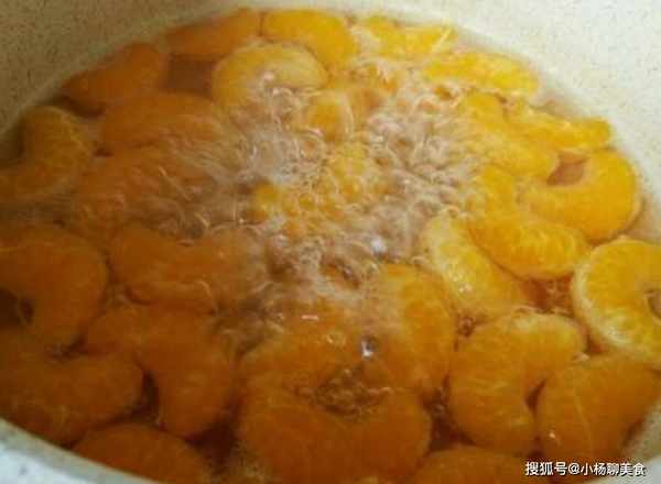 步驟四:然後把備好的橘子倒入鍋內,繼續煮2分鐘左右,看到橘子變軟即可。
