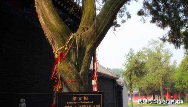 在洛陽關林,生有一棵巨大的柏樹,這棵柏樹是一棵三叉柏樹,在一人多高的地方,分成了三枝,這三枝被譽為"劉關張桃園三結義",代表著劉備、關羽和張飛一生一世牢不可分的關係。