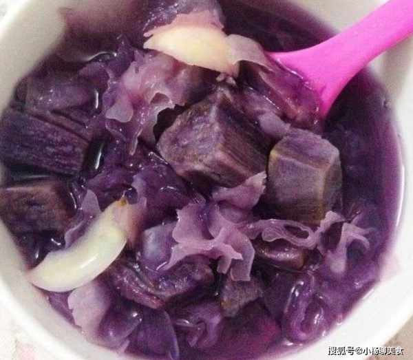其實想要緩解皮膚乾燥,不只是可以多喝水、用護膚品以及面膜,我們還可以在平時多吃一些可以滋陰潤燥的食物,比如今天和大家分享的這道紫薯銀耳羹。銀耳被譽為平民燕窩,不僅營養豐富,還含有大量的膠質,具有美容養顏、滋陰潤燥、延緩衰老的作用,而紫薯含有大量的花青素,這種花青素具有嫩白肌膚、淡化斑點的作用。由此可見,這碗紫薯銀耳羹不僅香甜美味可口,常喝還能美白養顏,皮膚越來越光滑細膩,女人一定不要錯過,多喝氣色好顯年輕。