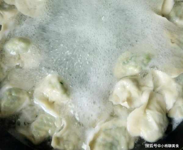 步驟七:鍋內添冷水,大火燒開,下入餃子,輕輕推散,再次燒開後,拿走蓋子,就像煮到餃子鼓肚,即可盛出食用。