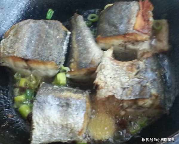步驟三:起鍋熱油,油熟後放入鮁魚塊,小火慢煎,直到鮁魚呈現金黃色。