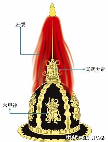 萬曆皇帝鐵盔的頭頂有六甲神,這已經够牛的了,可是老鼠拉木掀,大頭在後面,在在盔纓下,鐵奎的頂部,鑄著一尊真武大帝的鎏金像。