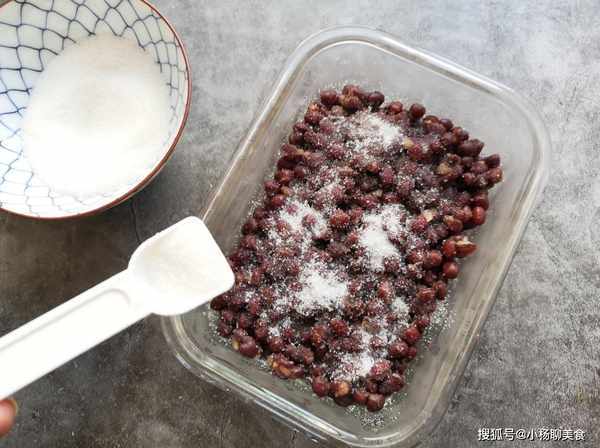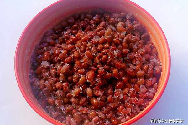 第四步:煮好的紅豆放到一個碗裏,加入適量的白砂糖攪拌均勻,放到冰柜醃制12個小時就可以吃了。