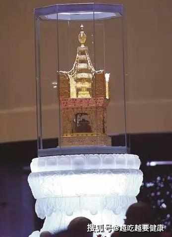 阿育王塔塔高1.17米,外面銀皮鎏金,鑲嵌著水晶,玻璃和瑪瑙等寶石,瞧著該塔外表金碧輝煌,堅實牢固的模樣,其實它的裡面早已經"糟朽"得不成個樣子。