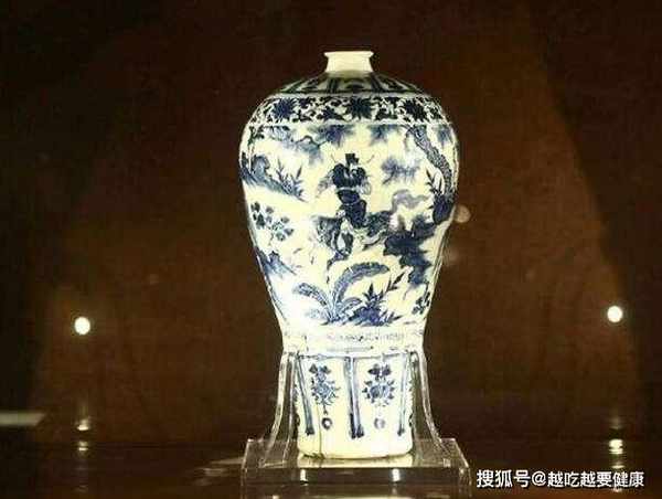 在我國古代,梅瓶是高級陪葬品,普通人是不能用的。2005年7月,一件元青花鬼穀下山圖罐以2.3億人民幣成交,而這個價格也在文物界引起不小的轟動。南京博物院中的"元青花蕭何月下追韓信圖梅瓶",高44.1釐米,口徑5.5釐米,底徑13釐米,給人一種雍容華貴之感。