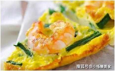 3.用一個圓勺,在勺內鋪一層麵糊然後擺放兩隻蝦仁在表面;