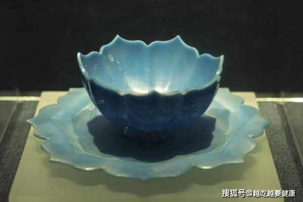 讓專家們意想不到的是,這件"二類文物"經過一番清洗之後,竟然驚豔了所有人,還十分貼切的印證了周敦頤的那句名言:"出淤泥而不染,濯清漣而不妖"。清洗之後發現,它原來是一件帶茶託的玻璃茶盞,其中盞為七瓣蓮花形,托為八瓣蓮花形,造型極為精美。不過最令人驚豔的是它的顏色,為當時罕見的普藍色,並且在燈光的照射下顯得熠熠生輝,堪稱是世間獨一無二的茶盞。