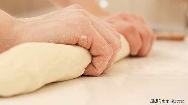步驟4:重複之前的步驟,將醒好的麵團,用擀麵杖擀成薄片,這次可別擀得太長,再次卷上兩三卷就差不多了。