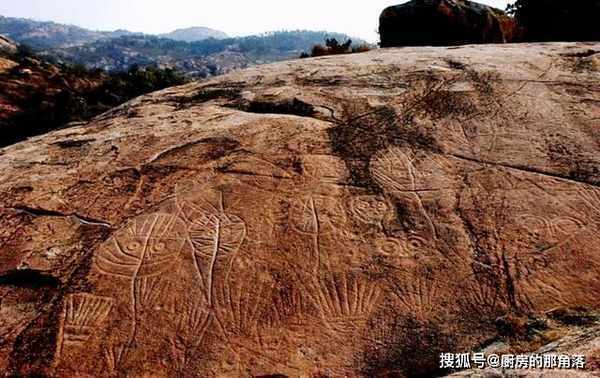 岩畫上這種奇怪的動物數量較多,足足有16個,雖然描繪的大小不一,但是整體結構卻是一樣的,即上部分是圓形,可見兩個圓圈表示的是眼睛,囙此圓形就是它的頭部,所以前面的線條或許就是它的觸鬚。另外,在其下方還有一條延長的線條,有的長,有的短,就如同拖著一條細長的尾巴。這究竟是什麼動物呢?