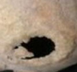 這天中午,考古專家們正在對墓穴進行清理,專家們在一處墓穴中,發現多具遺骸,為了保護文物,他們也就變得十分謹慎起來。經過一個多小時的工作,專家用鏟子和刷子,一點點地清理幹淨了覆蓋在遺骸上的泥土,同時又小心翼翼的將遺骸取出來。就在這時,一比特專家們有了個驚奇的發現,在遺骸的頭骨正上方竟然有個"圓溜溜"的洞,差不多有一塊錢硬幣大小。