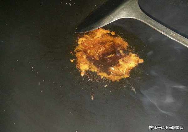 有很多人在這一步做錯了,加入冷水進去,這就有可能會讓糖色炸出來,會搞得廚房一團亂糟。加入開水才是正確的,加入開水進去以後繼續翻炒,發現泡泡變小,糖色變成紅棕色就可以直接關火,用餘溫再翻炒幾下,糖色變得粘稠後就可以把食材放進鍋裡面炒了。