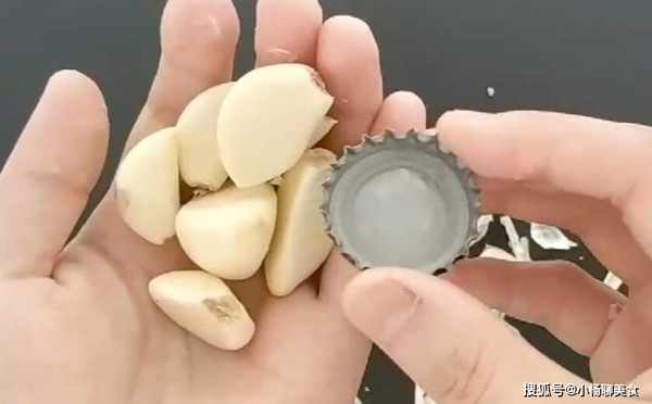 第三種方法就是用一個瓶蓋,可以是礦泉水的瓶蓋,也可以是啤酒瓶蓋,把蓋子的邊緣當做指甲,一瓣一瓣的把蒜皮剝掉,這種方法剝蒜皮又快又完整,一個都不會壞掉,而且還不傷手。