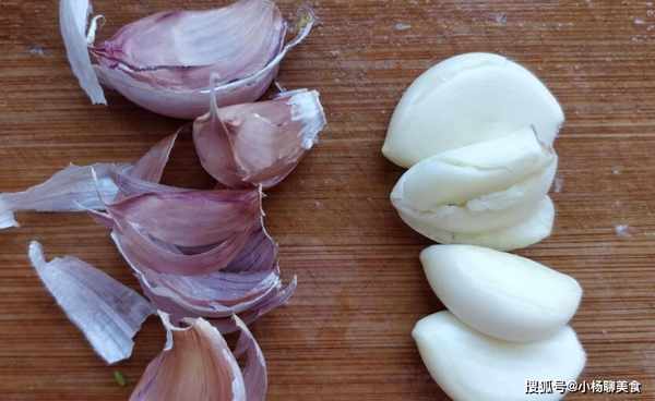 首先第一種方法就是用刀拍,這種方法是最簡單,也是最常用的,適合平時炒菜用,因為在炒菜的時候,用的大蒜量少,就可以用這種方法,首先把大蒜瓣分開,然後擺放在案板上,再用刀用力拍一下,蒜皮就直接掉了,但這種方法會使蒜瓣被拍爛掉。