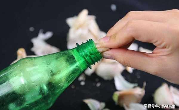 第四種方法就是準備一個塑膠瓶,把蒜瓣裝進瓶子裏,然後把瓶子搖晃一會,這時候很多蒜瓣的皮自然就掉了,也很方便,最後一種方法不需要借助工具,直接捏著蒜瓣的兩端,然後往中間壓,蒜皮也自動破開了,也是非常方便的一種方法,所以在大量剝蒜的時候,就可以用這幾種方法,又快又不傷指甲。