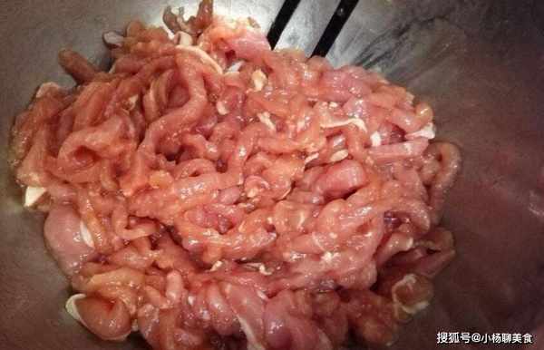 首先準備好一塊裡脊肉,裡脊肉比較嫩,炒出來也很好吃,在挑選裡脊肉的時候,一定要挑選新鮮瘦肉,聞起來沒有其他味道,用手摸起來不會很黏,也不會很幹,有彈性一點的瘦肉就比較新鮮,瘦肉準備好後,用清水把瘦肉清洗乾淨後,再切成片,然後切成絲,絲一定不能切得太大了,否則就不入味。